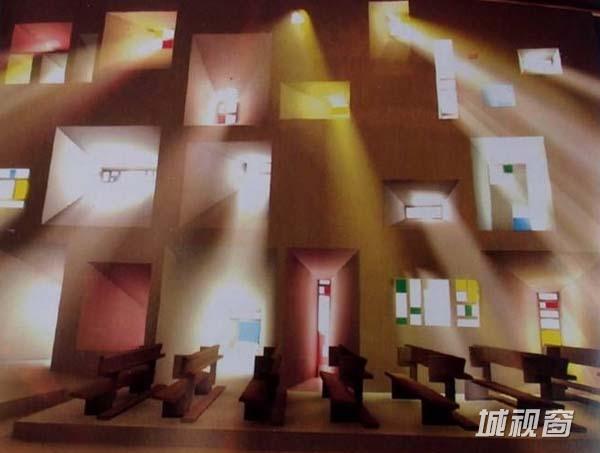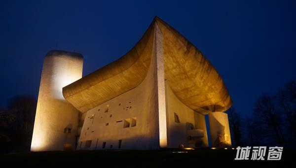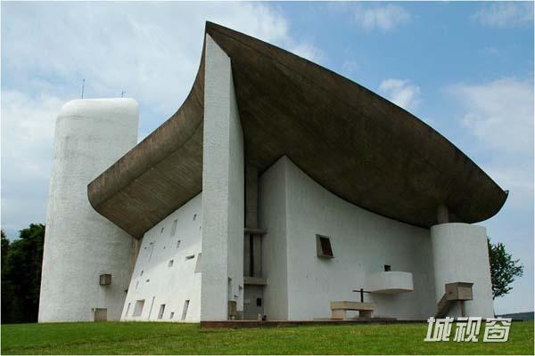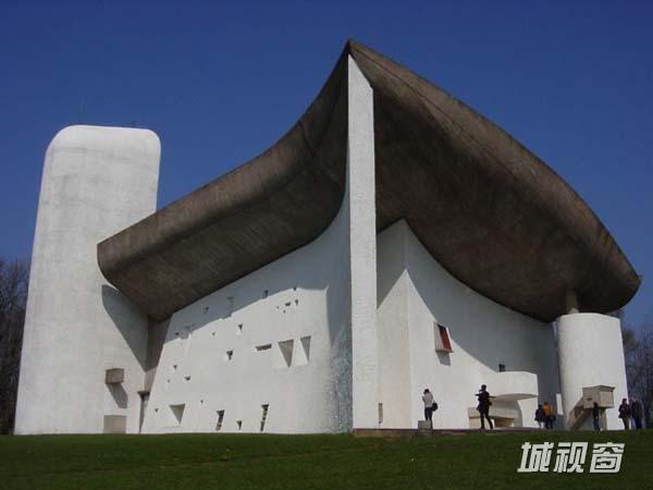 1950—1953年由法国建筑大师勒·柯布西耶(Le Corbusier)设计建造的朗香教堂(The Pilgrimage Chapel of Notre Dame du Haut at Ron-champ,又译为洪尚教堂)于1955年落成,位于法国东部索恩地区距瑞士边界几英里的浮日山区的一座小山顶上,被誉为20世纪最为震撼、最具有表现力的建筑,如同白色的幻象盘旋在欧圣母院朗香村之上。