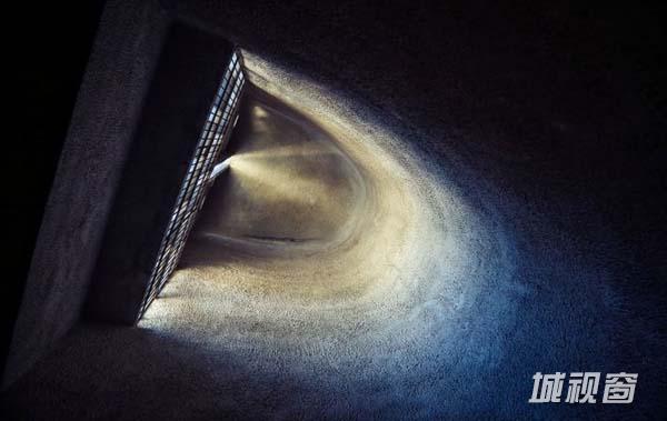 在朗香教堂的设计中,勒·柯布西耶把重点放在建筑造型和建筑形体给人的感受上,要把朗香教堂设计成一个“视觉领域的听觉器件”,应该像(人的)听觉器官一样的柔软、微妙、精确和不容改变”,“朗香与场所连成一气,置身于场所之中。是对场所的修辞,对场所说话”。在另一场合,他解释说:“在小山头上,我仔细画下四个方向的天际线,……用建筑激发音响效果——形式领域的声学。”把教堂建筑视作声学器件,使之与所在场所沟通。进一步说,信徒来教堂是为了与上帝沟通,声学器件也象征人与上帝声息相通的渠道。这可以说是勒·柯布西耶设计朗香教堂的建筑立意,一个别开生面的巧妙的立意。
