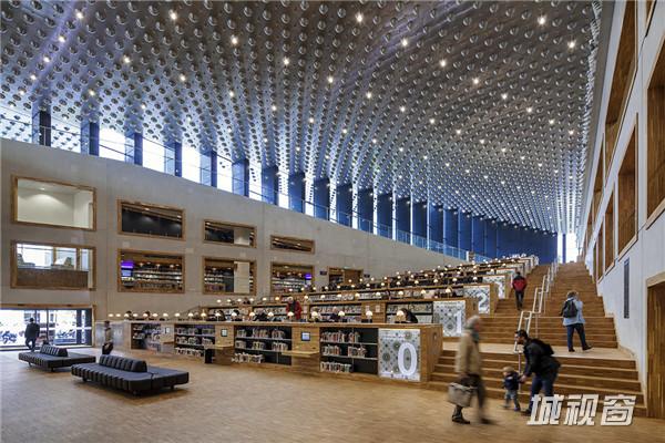 Eemhuis的图书馆是一个广场阶梯信息平台作为城市广场的延伸,使游客到主要的图书馆楼。在楼梯口泄漏到与图书馆书库、阅读和研究俯瞰城市地区广阔的空间。建筑物的顶楼设有艺术学校。这三个艺术部门(戏剧与舞蹈艺术,视觉艺术和音乐)都分别表示为悬臂梁。