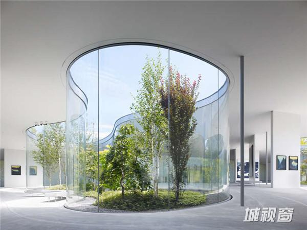 这座博物馆收录了艺术家从1978年至今的大部分作品,并利用周边自然景物作为作品展示的背景。博物馆地面依地势而建,整个展厅的地面稍微倾斜、鼓胀。建筑师还设计了一系列有机形态的采光井,并在室内插入了一些绿色空间。深屋檐,银幕和抗紫外线玻璃在控制室内进光量的同时,也将森林的环境品质引入室内。