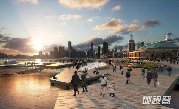 PierESCAPE愿景海军码头是一个世界级的城市景观项目,它能保护密歇根湖、加快经济增长、为芝加哥人民创造一个远离尘嚣的场所。这个地方集娱乐、休闲、文化和生态于一体,“令人兴奋、丰富、具有可持续性”。码头可以举办多种活动,吸引芝加哥人民和游客在一年里一次次地重游码头。“我们的目标是将码头与原有的、新建的和计划建设的建筑高度融为一体”