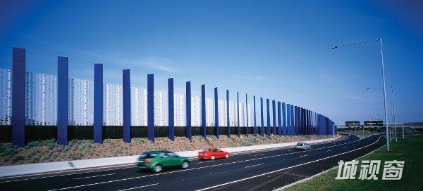 本项目的设计是为了体验110公里的高速公路时速。它包括三个系列的雕塑隔音墙、一座人行天桥,以及道路桥梁、防撞护栏和挡土结构这一组设计元素。
