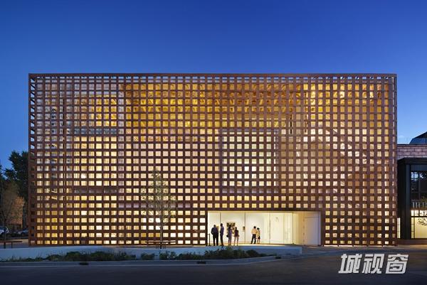4、木材外表皮:编制的木材外立面笼罩了建筑的两个主要立面,成为建筑的标志,其通透的构造让光与风任意游走。特别是光,在博物馆的楼梯,走廊和空间中雕琢出动人的光影。