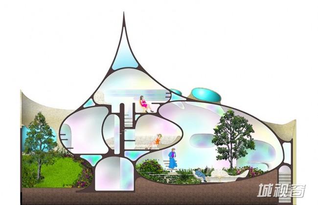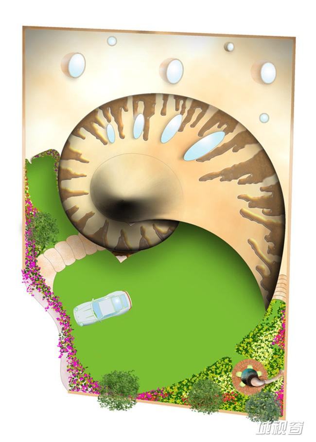 洗手间 鹦鹉螺贝壳屋顶视图 鹦鹉螺贝壳屋剖面图