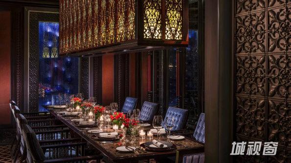酒店以中国传统建筑设计风格为基础,其气势恢宏、极富中国传统建筑风格的酒店大门和宽阔的幕墙,宏伟之势使人自然而然地联想起紫禁城的富丽堂皇。置身其内,大堂之内雕梁画栋、色彩斑斓,地毯上寓意吉祥的盘龙图案以及代表帝王之尊的明黄金箔天花板都彰显了来客的尊贵与财富。