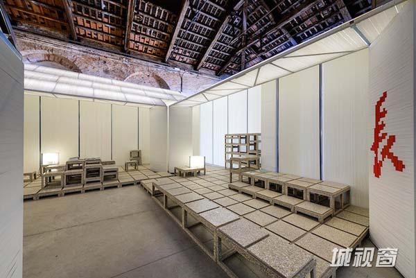 这个颇有着玄学意味的主题来自本届中国馆策展人、《城市中国》杂志创刊主编姜珺的构思,他协调多相工作室、OPEN 建筑事务所和 URBANUS 都市实践建筑事务所三个团队,完成了百年中国建筑的四大总结——生、长、收、藏。从军械库油库的室内空间,再到室外的处女花园,策展团队设计了一种螺旋形的观展格局,层层递进,微观到宏观,“每一次尺度的放大都形成一种累进的气势,其实就是‘山外山’的气象。”