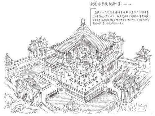 北京小西天北海公园:在陆地上如何创造南海普陀观音道场?乾隆皇帝在北京尝试一座小西天,我发现其设计构想非常几何化,四角有亭,四边有牌坊及石桥,中央为正方形大殿。为了表现内部普陀山胜景,必须“拆”掉一角。