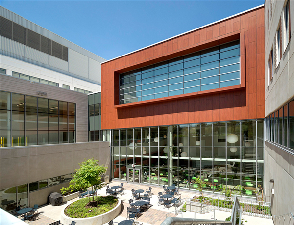 ▲ 位于安大略省汉密尔顿的圣约瑟夫医疗保健学院汉密尔顿(2014)的玛格丽特和查尔斯·朱拉文斯基综合医疗保健中心公共区域旁的室外露台是可供患者使用的多种空间之一。由Bjorg Magnea提供