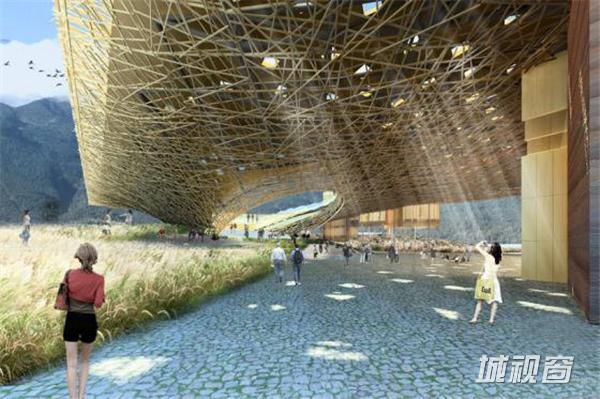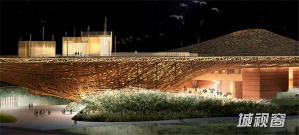 朱锫:举个例子来说明这个观点,跟艺术家杨丽萍合作,在大理做表演的艺术中心,她的表演非常原生态,她的演员都不是职业演员,全都是当地农家的孩子,他们在捕捉一个原始的状态,如果我们看到这些环境的时候,你会觉得大理是非常自然,人工活动很小的一个地方,我们设想把建筑做的最低,我们看到有两个地平线,我们所看到的这个图片就是整个大理,没有一条直线,除了水平线,整个山的轮廓,包括建筑也是歪歪扭扭,所以我们希望建筑做的最小,因此会控制它的高度,我们看到有两条线,一个是地面一个是我们要建造的控制线,接下来我们看到两个立的薄翼,我们希望它像远古时代的穴巢那样是很古老的建筑类型,也希望回到特别朴素,特别本能的那个状态,又希望可以遮阳避雨,所以整个建筑会有一个大的雨棚,所有非常重要的功能全都放在草坡之下,我们刚才看到右手边的那个房子是一个基本的表演空间,前边空的空间可以看到它是一个主要是用来在户外活动的,我们看到左手边的空间是户外入场,按照传统意义的剧场这个空间就够了,但是我们把这个剧场压小,相反我们做了户外剧场,让一个很空灵的空间在这里可以实现很多可能性,比如我们看到的这个剧场。包括屋顶也可以上人,这样一个传统的剧场再加上一个户外的空间。我觉得作为一个“空”的空间要留有余地,它可以带来很多可能性,作为一个剧场最终可以让这个舞台可以被联动,人可以从两侧去看,包括人在屋顶上,这个地方鸟可以穿越建筑,你看到的是没有直接对传统建筑材料,甚至于是建筑形式的复制,但是这个建筑当拨开人的主观偏好,考虑到人们最大限度的在户外活动的时候这个建筑的意义才得以实现。材料用的都是自然的材料,顶部用的是片岩,底下用的是木头和当代技术的结合,想通过这样一个建筑来表达“自然启发设计”,回到一个更接近于人类最早的建造,最本能的时候去得到启示。