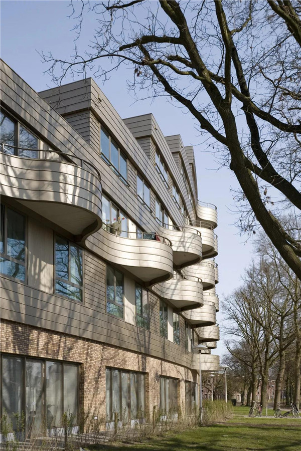 建筑物的穿孔立面围绕着每个私人阳台,作为儿童的安全网。