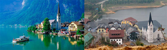 哈尔施塔特镇那上升的教堂尖顶、色彩柔和的小木屋以及得天独厚的湖边位置,让它每尺每寸都像极了明信片上的阿尔卑斯山小镇。然而,这里讲的这个并非奥地利的那个哈尔施塔特镇,而是中国南方城市惠州的某地。去年,这个奥地利小镇被“偷偷克隆”的消息传开后,很多当地居民出离了愤怒。但镇长Alexander Scheutz却欣喜若狂。他说:“我们深感荣幸。”因为这个克隆品已经成了文化促销的合理手段,因为每年到真的哈尔施塔特镇参观的中国游客从50人增加到了1000人。