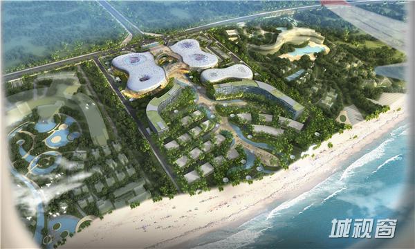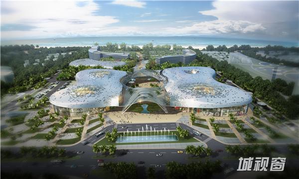 整个商业中心创作灵感来源于象征三亚地区的海棠花。两个建筑作为免税购物商厦,中间有一条五十米公共轴线从北面穿过场地,南面有公共街道与海边相连。两建筑分别围绕下沉式中心庭院,庭院装饰水景和绿植、可用于展览。造型独特的自由金属屋面勾勒出建筑轻盈的流线,也为购物者提供良好的舒适遮光环境,尤其是主入口屋面跨度50米、高35米更凸显了项目的标识性特征。法国VP建筑设计事务所在本项目中承担方案设计与建筑专业初步设计的工作。