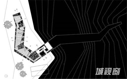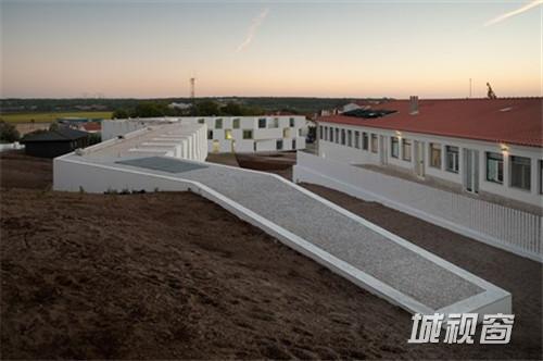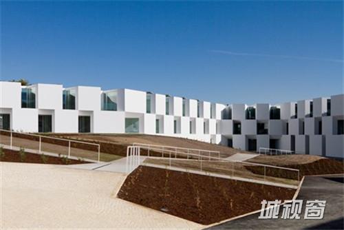 整个建筑是长形的,并且沿着Santa Casa de la Misericordia疗养院的东南边线循环成一个封闭的形态,好像一座带缝隙的墙,将一个新的空间开辟出来。