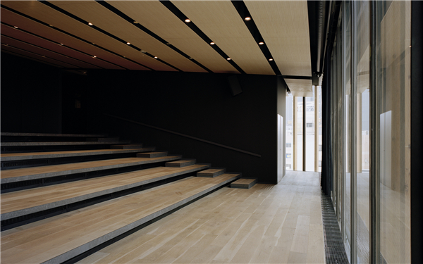 屋顶不仅分隔结构,形成八个单层的单元,同时还定义每个不同楼层的角色。一二层有中庭和室内的楼梯,这样创造出一种两个屋顶的次序感,六层最大限度的利用倾斜的屋顶,以形成一种台阶式的空间,从而用作剧院。因为屋顶的角度向一侧偏斜,楼层的高度也不一样,每层都与室外形成不同的关联,从而形成每个空间独特的感觉。