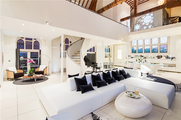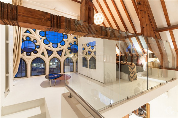 为了满足功能,内部还加设了一部现代风格的弧形楼梯,最后配置上当代艺术品及家具,便成了一处古今融合的居所。有信仰的人能住在这样的“大house”里,一定很幸福……