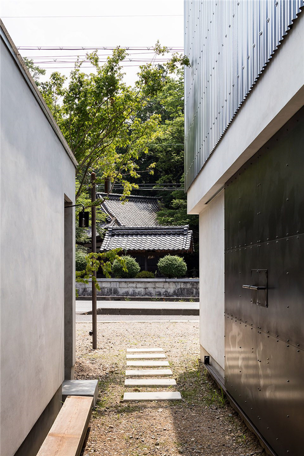 一条幽暗的小径从建筑入口处一直通向室内,将游客引到被天光照亮的画廊。画廊和庭院相接的墙面上设有开窗,将室外景色如画作一般展示在人们面前。空间尺度和自然光照相得映彰,体现了一种来自于日常生活的愉悦感,也可以供摄影取景使用。