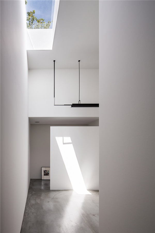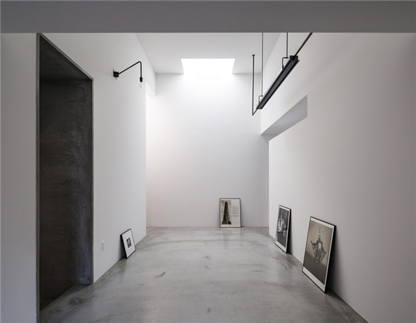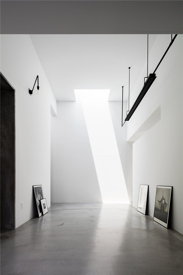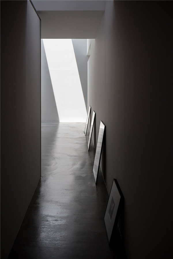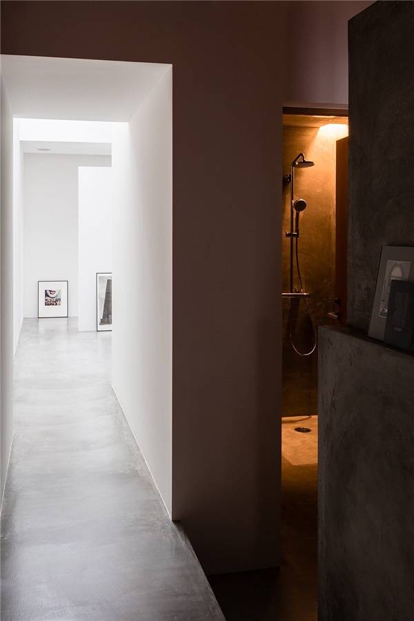 狭长的通道贯穿整个画廊,但其功能并不仅限于过道,它还是一条用来展示艺术作品的展廊。走廊的主题随着视角转变而发生变化,不同的层高以及自然光洒下的光影带来美丽的视觉效果。大厅位于建筑中央,不同层高的空间交汇于此。这里还设有卫生间,吧台和楼梯间等生活必须空间,并且与庭院直接相连,功能与美景并重。