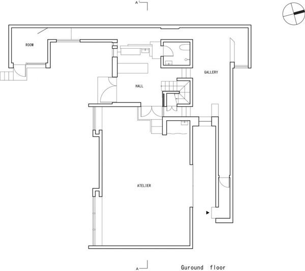 项目为一位摄影师的工作室,画廊兼住宅。业主希望将生活空间和工作空间融合在一起,因此建筑师放弃了按照功能划分空间,而是根据使用者希望的生活方式对平面进行了相应的设计。