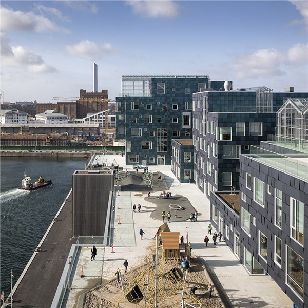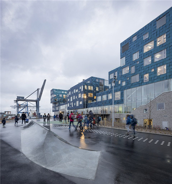 该建筑采用12,000块太阳能板作为建筑立面,其微倾的太阳能板如同建筑的鳞片一般在阳光下闪耀。该太阳能板可提供该学校一部分的年度用电量。太阳能板所覆盖建筑面积达6,048平方米,使其成为丹麦最大的太阳能供应建筑,年产电量高达200兆瓦。值得一提的是,该建筑的绿色供电方式不仅成为该学校的独有标签,也为教育教学提供了大量数据支撑。