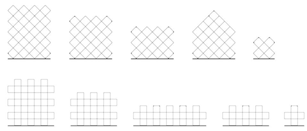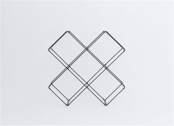 “+x 书架”原是众产品四合院办公室中,为了适应山墙面而设计的一组书架。后被发展为一组适用范围极广的书架系统。书架基本单元由直径8mm 的“口”形钢架与3mm 厚阳极氧化铝板组合连接而成,可直立,也可斜放,形成“+”形或“x”形。可作为独立单元直立使用,也可上下左右拼合形成更大的书架。铝板着不同色,在钢架中组合摆放,形成不同颜色搭配和反射的效果。充分考虑运输与安装的便利,所有组件均可拆装,方便运输与包装,有效降低成本。