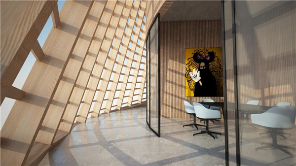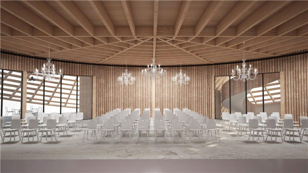 “莫比乌斯环”的形状同样暗示着建筑的内部功能,建筑将室内外的活动空间重新串联在一起,为观众创建了能够俯视场地下方湖面的空间。MOA继续解释道:“圆形剧场是一座巧妙而别致的建筑,处处显示出对周围环境的尊重。同时,它又以一种十分显眼的方式傲然挺立于场地之中,用其独特的建筑特征成为一个新的地标式建筑。”