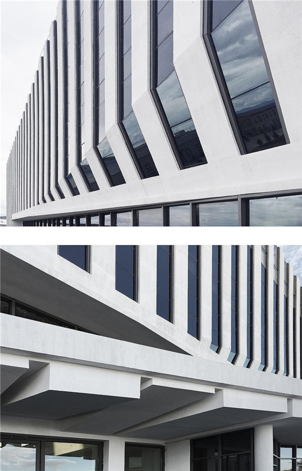 项目不大位于厂区内,城市道路的节点处。那我们要解决好四个视觉立面的效果,我们首先要尊重功能,就把L体量做我们的母体,其从平面功能和视觉体块都比较丰满好用。我们需要在母体上做些手术来提升我们建筑的艺视效果,这些局部做的每一笔动作都要经济有效,能够更大提升建筑的品质。