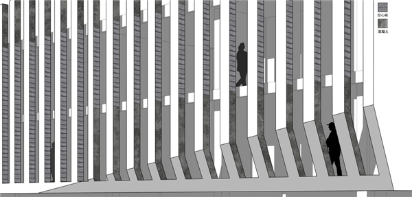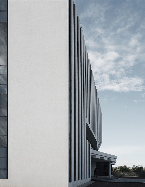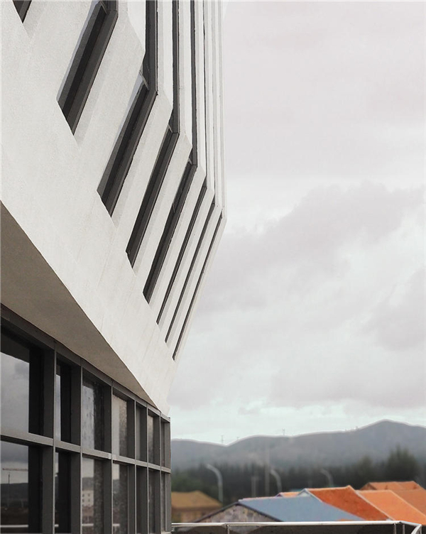 我们想要使建筑在秩序的语素中获得变化并不破坏功能,形成一个立体的艺塑性建筑既与周边的旧貌对望又与特有的无垠山貌相互吸引,似一块切片岩体生成于广袤的大地之上。
