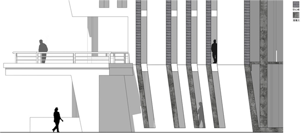 4.女儿墙拔高做围合高低切削,并为以后提供拓展空间。