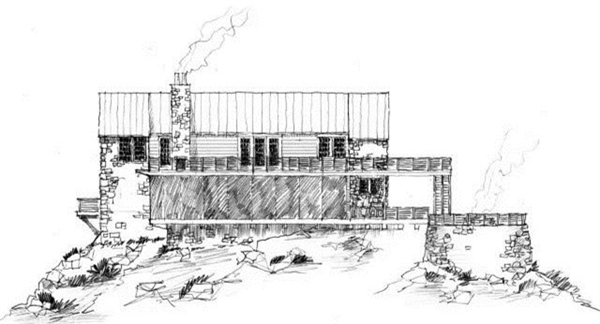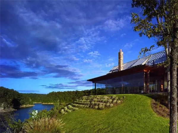 坐落于悬崖的边缘,设计着重于连续不断的山水景色。面朝湖面的外立面完全使用玻璃构成,因此也减少了摆设艺术品的需求和复杂室内设计的必要。不管人处在家里的哪里,窗外的景色都是每个房间的焦点。建筑师Chris Reebals说:“我希望能够尝试非常戏剧化的东西。我希望将这山水画与悬崖峭壁间的联系夸张得强调出来,让房子就像要从山的边缘上滚下来一般。如果你坐在任何一个公共空间中,我希望你能感受到自己仿佛漂浮在水面上。你能看见的所有景象都是被四面八方的湖水包围。”