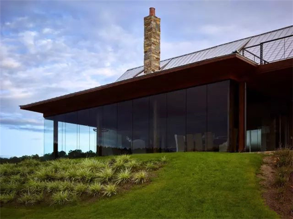 产品描述:面向湖面的墙体全部是玻璃构成,由Nelson Glass提供。建筑师有意留出了原用于镶嵌的空间,来制造出不受阻碍的景色,变换的景象便成为了家中的艺术品。