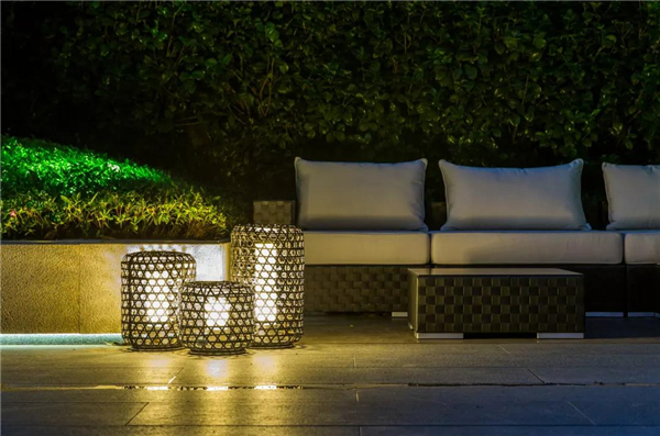 六层天台花园为瑞吉酒店及W酒店共用的休憩空间,设计团队坚持以“自然生态”的原则进行布局空间处理,通过景观设计提升项目屋面的景观生态效益。通过高差的处理,增加景观的趣味性;通过立体绿化,竖向设置围合空间,提高整体绿化率,增加环境舒适度。引入“海绵城市”的理论,通过高位雨水花坛、立体绿植等设施截流收集雨水,过滤植物根系与土壤,同时启用自动化定时浇灌系统对雨水进行再利用,减少热岛效应。