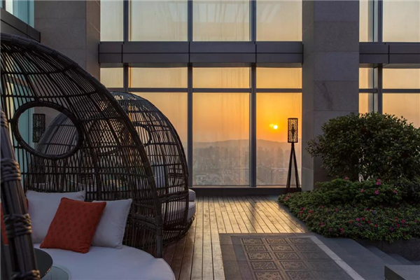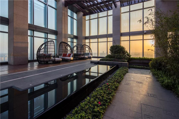 Nestling in the highest skyscraper of Yunda Central Plaza, sitting in Changsha HSR New Townthe which is called the“New Pudong in Central China”, St. Regis Hotel enjoys the superior location --- the core area of WuGuang Business Circle. The landscape design has followed the introverted and elegant style of St. Regis hotels, trying to combine local characteristics with traditional oriental aesthetics. The designers have drawn inspirations from nature, using the basic design elements“mountain, water, cloud and tree”to create a “valley in the clouds”.