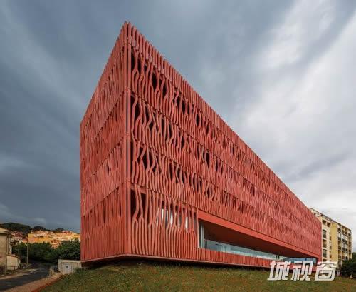 建筑师提供的项目信息。本案住宿中心项目包括一间餐厅、科研工作中心和74间宿舍。该建筑是包括海洋学研究中心和法国巴纽尔斯天文台的一个综合设施的一部分。这个天文台位于东比利牛斯省刻耳柏洛斯-巴纽尔斯海洋自然保护区中央。它是一个欧洲科研与培训中心,目的是为前来进行短期研究、完成实验任务的来自世界各地的科学家与学生提供住宿空间。