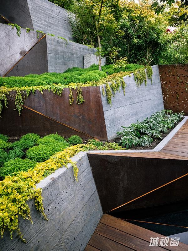 Hilgard花园位于加州伯克利大学的附近。旨在拓展业主的户外生活空间。业主的院子有一个陡峭的坡,坡上坡下各有一块平坦的用地可作为休息场所。为了避免占用过多的庭院面积,采用了高台地式布局,上面种上了日本枫树和芳香植物。业主希望将室外座椅区和娱乐区布置在靠近房屋的位置。璀璨魅力的小提琴游泳池。