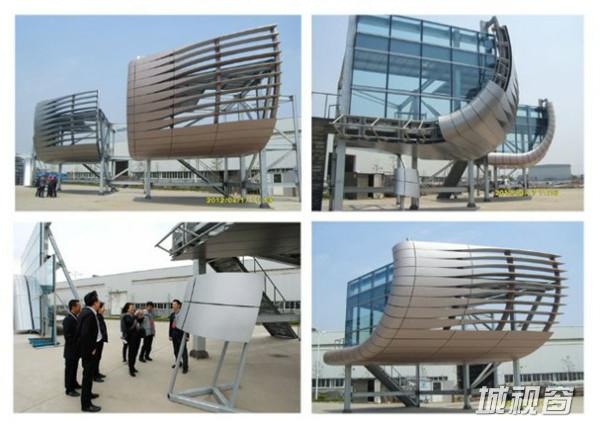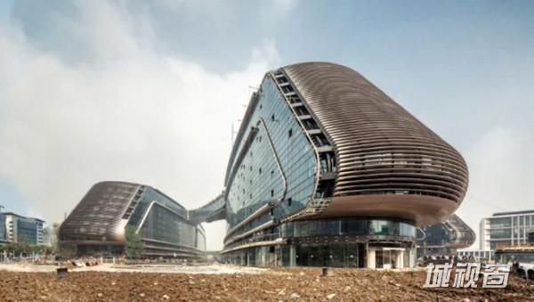 四栋办公楼端部,子弹头般的设计,更仿佛象征了高铁列车的火车头。