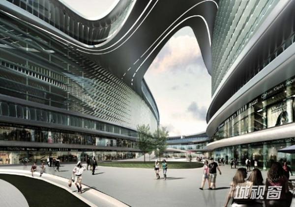 已经建成的凌空SOHO办公区,简洁明快。