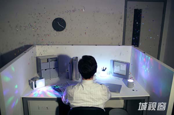 五彩纸屑、烟花爆竹、泡泡和迪斯科球这些一场成功派对的必要元素,不大可能出现在小隔间的办公室——除非你给你的办公桌配备了“桌上烟火”。由在英国工作的日本设计师左右田智美(Tomomi Sayuda)构思的这场小型派对,平时是各种普通办公用品的化身,但若按下这大个的紧急按钮,它们便变身为“桌上烟火”,放音乐、喷泡泡、爆彩屑、打灯光,竭尽所能地在办公场所为你减压。不过设计师提醒道:“一定要在压力极大的情况下才可使用。“