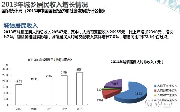 这是2013年城乡居民收入对比,农村的人均纯收入八千多块钱,不到九千块钱,从数量上来讲是往上走的,但是城镇的收入已经接近三万了,也就是说,它们是一比三一比四甚至一比五的一个收入的落差,这就导致城乡很大的差距造成了社会的问题越来越严重。