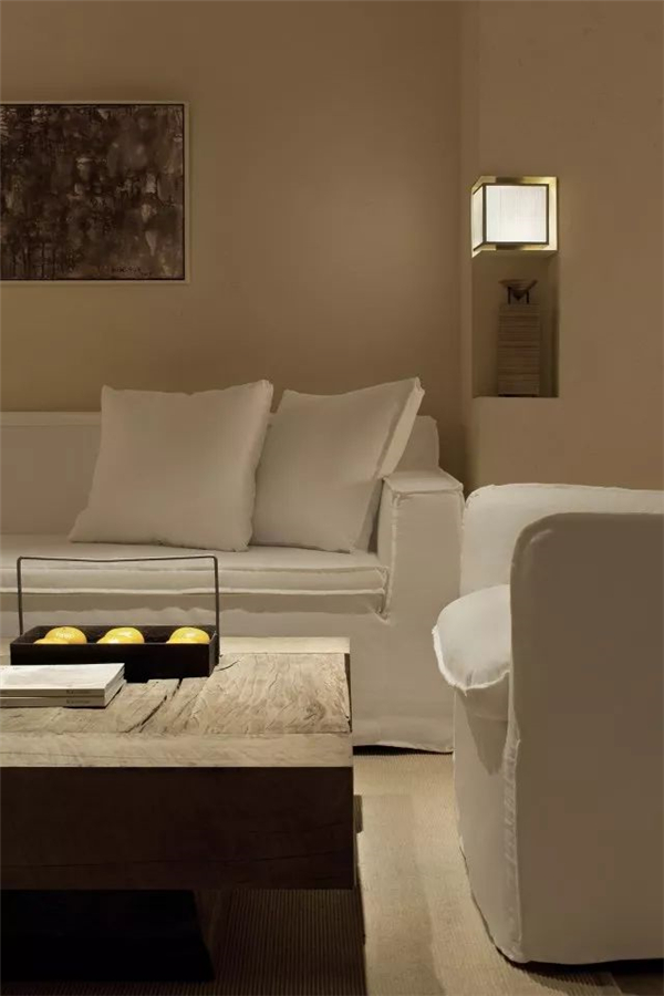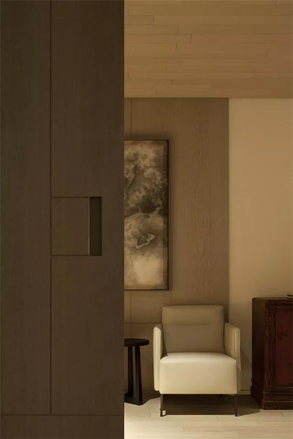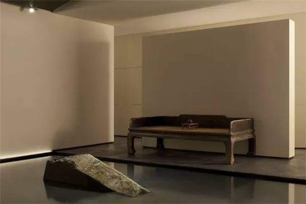 画和雕塑都属于一种需要场景放置的东西,说不清到底是画影响空间的气场,还是空间影响对画的感官,当然更应该是互为因果相互映衬的。我收藏的一幅中国意向的绘画不足一平方米,在未挂上墙前,只觉得不错,而放置在那位置上后,顿时气场放大了数倍,视线很难从画面上挪开,总想在其中看出个所以然来。为这个空间专门请艺术家定制的雕塑静默在璧龛里,掌管着方圆十几米的气枢。我很喜欢空间内有着艺术品的映衬,并且一直认为其是构建空间美学的一大重要组成部分,而形式自然是可以丰富多样的。例如水旁那张清末的塌,休息区的画,和音响构建在一天起的灯,大瑞的东方意向的家具,我四年前收藏的老金砖等。