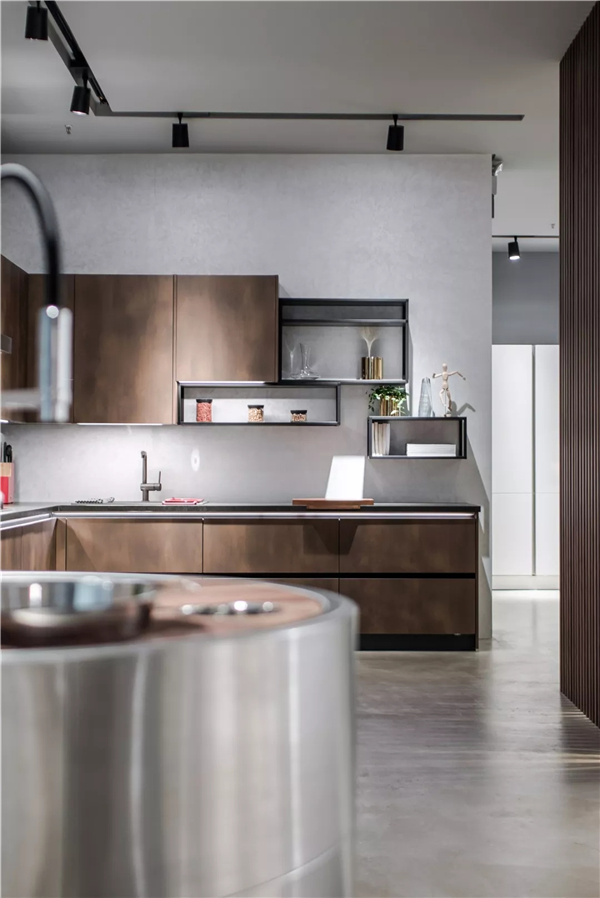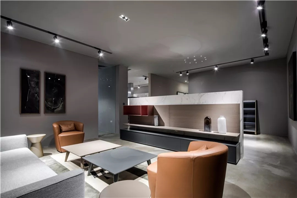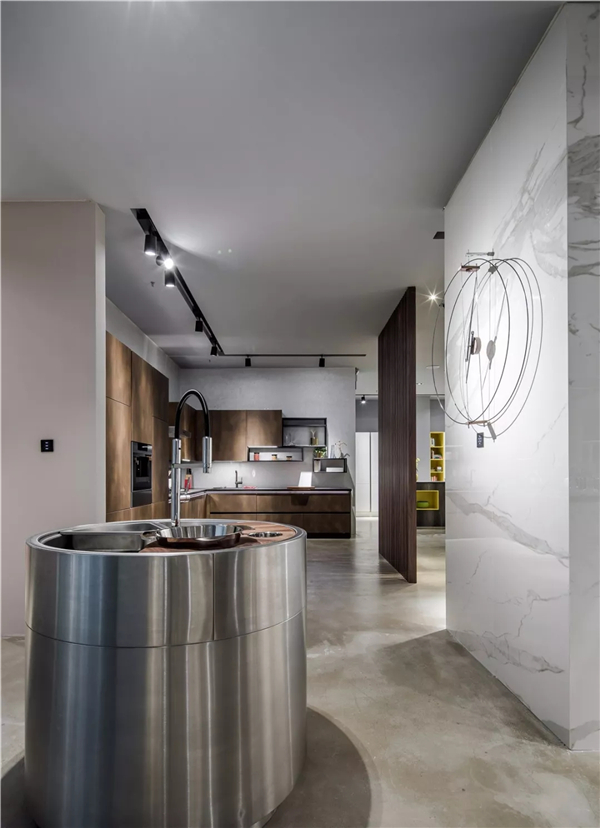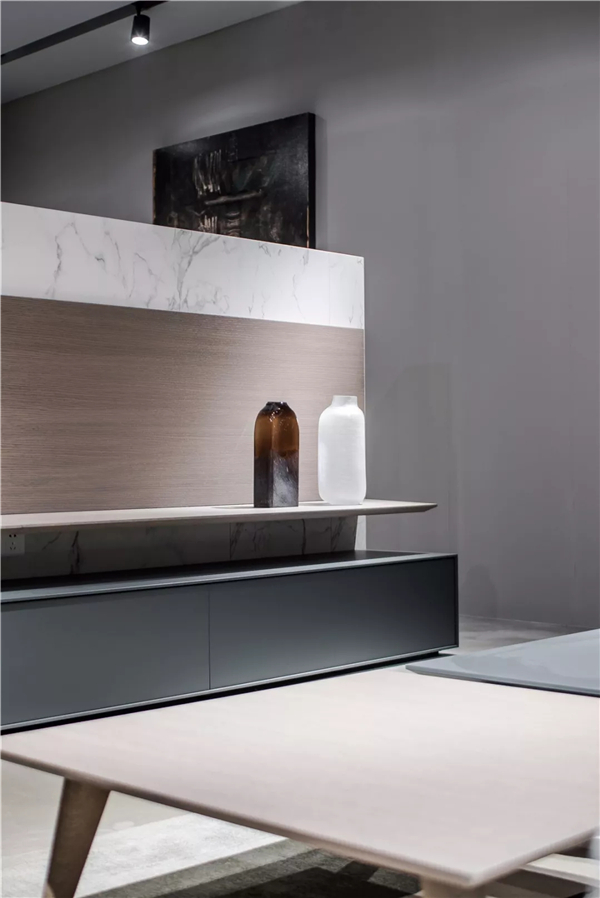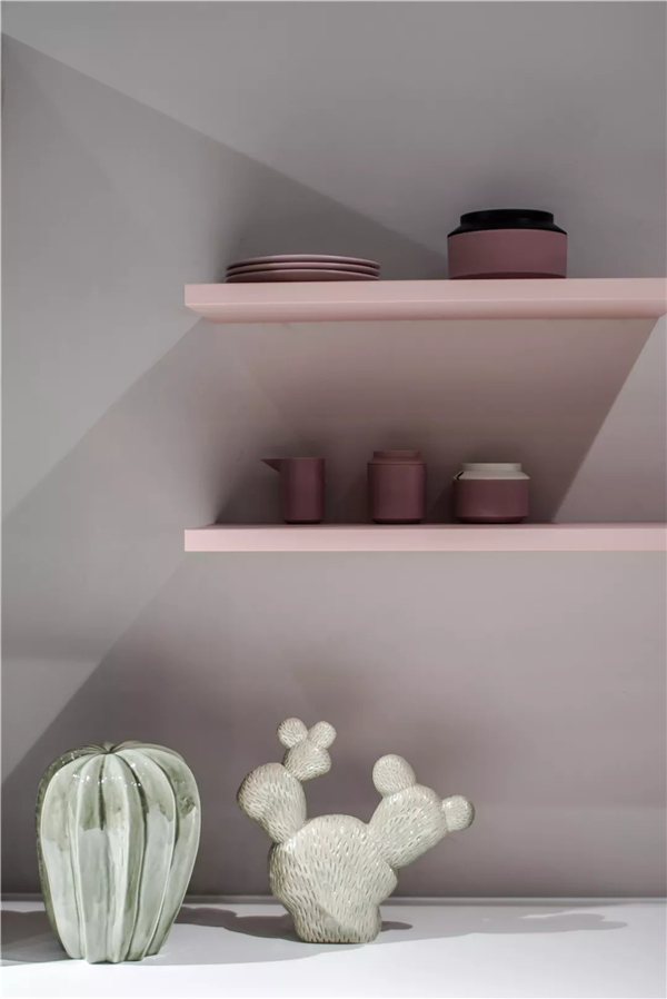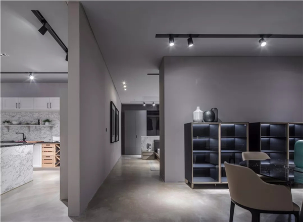 灰,介于黑白,它兼具黑白的优点,稳重,含蓄,却更能呈现艺术意蕴,更具包容性,可与任何色彩搭配。设计师亦有意借”灰“这个中性色彩消弭过道空间,使室内更显宽阔;借“灰”的包容性去呈现更多色彩组合的魅力,使空间更具层次感。