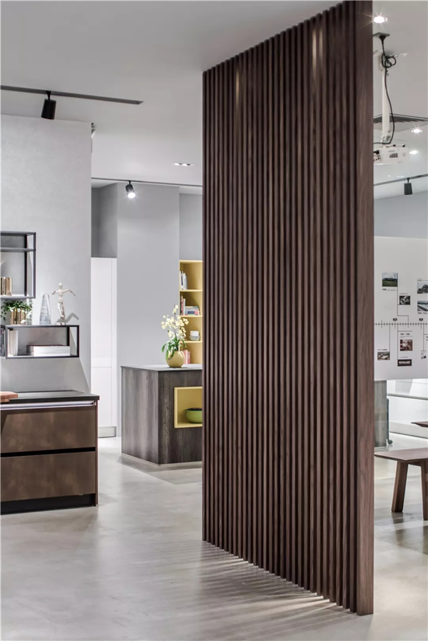 本案以隔断为“断”,以屏风为“断”,以留白为“断”,让空间告别饱和感,又以“断”为“续”让空间展现更具张力。设计师以“有间”表达“无间”的概念,以“无间”表达“无间冬夏,心在桃园。”的美好景愿。