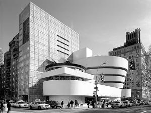 作为现代主义建筑风格的旗手,查尔斯?格瓦德梅还运用复杂的几何形设计建造出许多令人印象深刻甚至动辄引起争议的公共建筑。他注重建筑与周围环境的协调,很多作品都能够很好地与城市肌理相融合,其中包括纽约国际摄影中心、阿斯托里亚移动影像博物馆以及哈佛大学艺术博物馆的扩建项目等等。最引起争议的设计是他在1992年完成的纽约古根海姆现代艺术博物馆的加建部分。这个博物馆原本是弗兰克?赖特设计建造的,赖特的古根海姆也曾一度引来争议,但当人们终于开始看惯这一创意,并将螺旋结构的古根海姆奉为经典,格瓦德梅却似乎无意于向赖特颇具风格的怪诞螺旋妥协。他采用标准而简单的现代主义形式,在螺旋旁边造了一栋方方正正的大楼。现代主义形式的兼容,使这座对比强烈又具有和谐韵味的建筑最终为世人所接纳。
