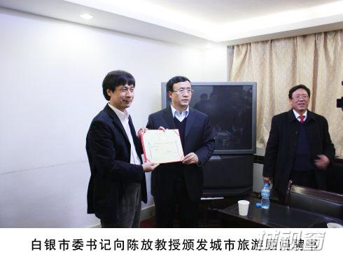 最后,陈放教授和白银市委书记就白银市旅游发展的现状及关于白银市旅游业突围的落实工作、白银旅游的发展方向等问题进行座谈。袁书记对陈放老师提出的黄河大峡谷概念非常认可,当即聘请陈放教授作为白银市的城市旅游发展顾问。相信在在陈放先生的重磅核策划下,白银旅游定能全盘激活,顺利突围!成为西北旅游又一张亮丽名片。