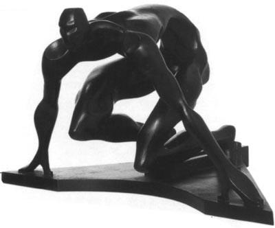 曾成钢(以下简称曾):雕塑用来表达体育是一个非常合适的形式,从古希腊开始,竞技雕塑非常丰富,像掷铁饼者、掷标枪者,包括与体育相关的故事和人物雕塑,用来表彰或纪念奥运冠军、体育健儿。今天用雕塑来诠释奥运精神也是有意义的事情,尤其在中国百年奥运梦想实现之时,我创作《圣火接力》要表达的是,从希腊到北京,圣火不灭就是奥运精神传到今天,所以塑造的是一个希腊人和现代人共同举着圣火奔跑。