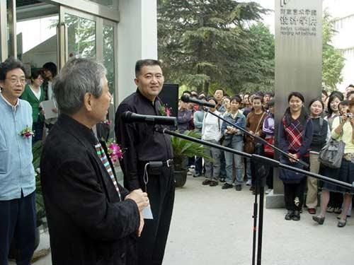 国际著名设计家、AGI国际平面设计协会会员、日本印刷美术设计协会会长福田繁雄先生应南京艺术学院设计学院的邀请于2004年10月11日到南京,在南京艺术学院设计学院展厅展出了50幅近作。开幕式结束后,福田繁雄先生饶有兴趣地向同学们逐一介绍自己的设计构思,使同学们收益非浅。