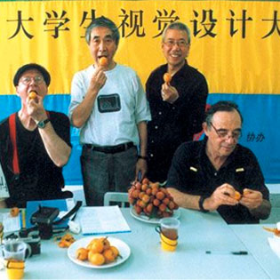 2001年世界设计大师福田繁雄先生,随全国大学生西门子移动创意营来武汉讲课。