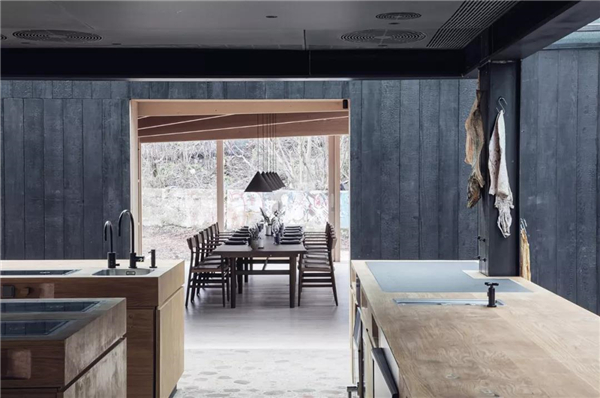 该空间设计强调了对橡木、砖、钢材、混凝土和铜锌合金的趣味运用方式。其中每一栋建筑均采用某一材料且仅作为单一功能使用,如用餐区、入口、休息厅或私人用餐区。这些空间各自拥有极强的个性及表现力,然而聚合在一起又会展现出巨大的能量。Noma 2.0的厨师和合伙人René Redzepi将这7栋建筑和餐厅空间称之为“餐饮聚落”。