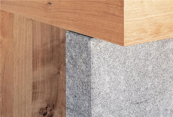 该空间其他家具包括由室内设计师Studio David Thulstrup定制打造的双人或三人橡木沙发,由Kasthall打造的布艺地毯,以及由橡木和瑞典花岗岩打造的吧台。来自Faroese织布艺人的蓝色靠垫和由Pettersen & Hei打造的黄色混凝土基底打破了空间的沉静之感,营造了一丝活泼氛围。
